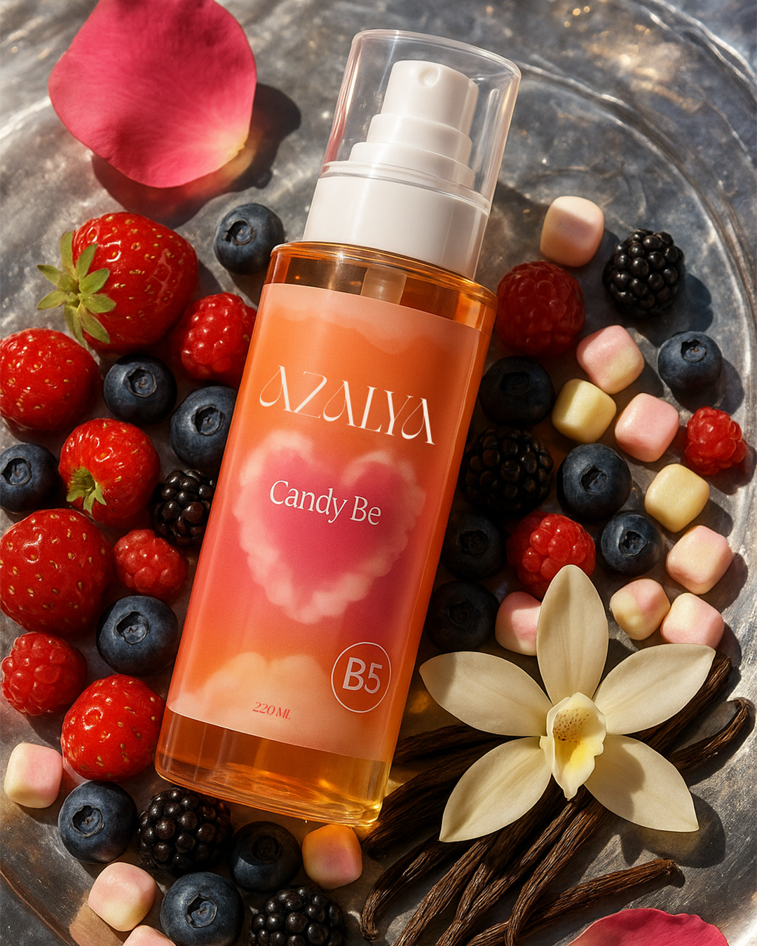 A sweet everyday splash with notes of strawberry candy, vanilla, and berries. Infused with Vitamin B5 to help keep your skin soft, hydrated, and glowing all day.